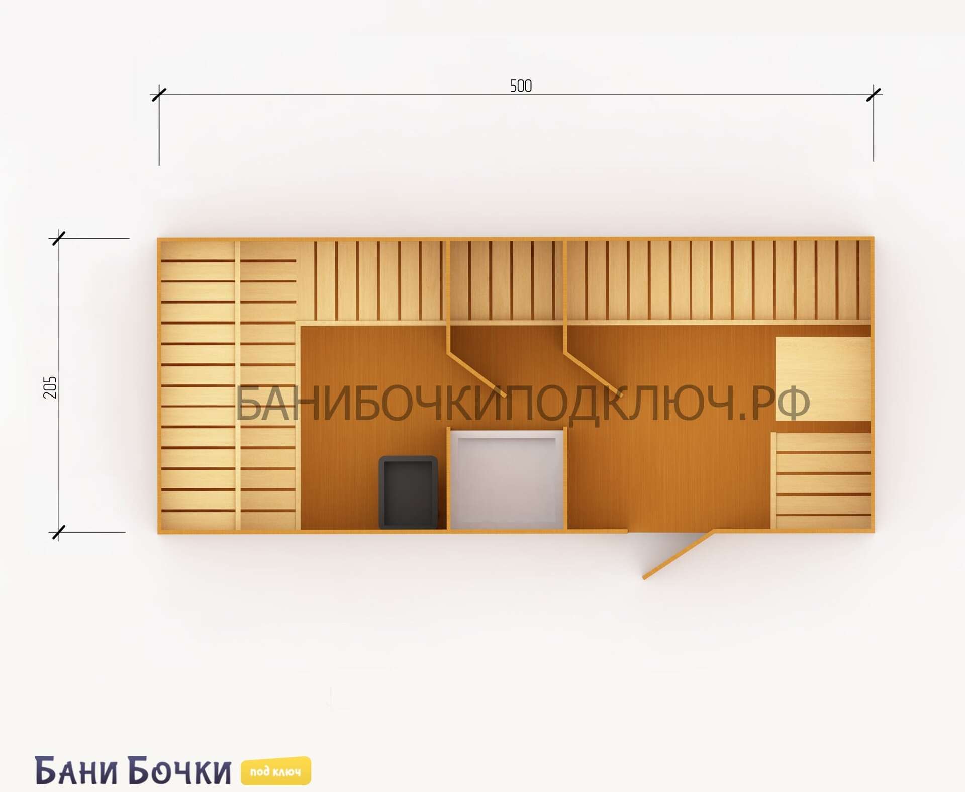 парилка - 210 см, мойка - 70 см,